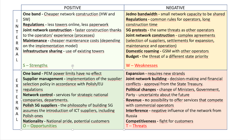 Figure 3. SWOT for Polish5G.